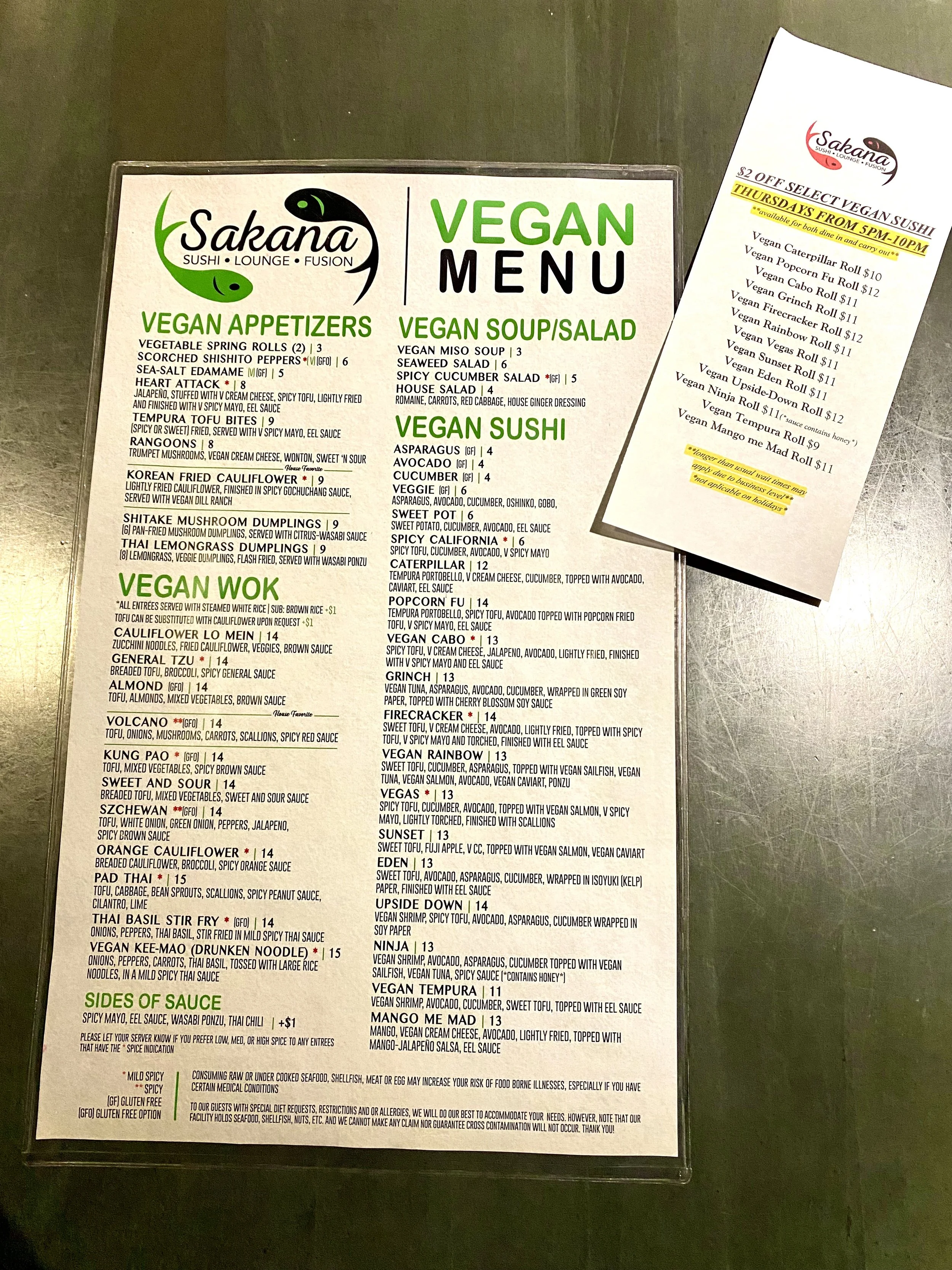 *Pro-tip: Thursday is vegan night at Sakana! This sushi spot gem is iconic 7 days a week for vegan diners, but Thursday is especially V.I.P. vegan treatment with specials and discounts.