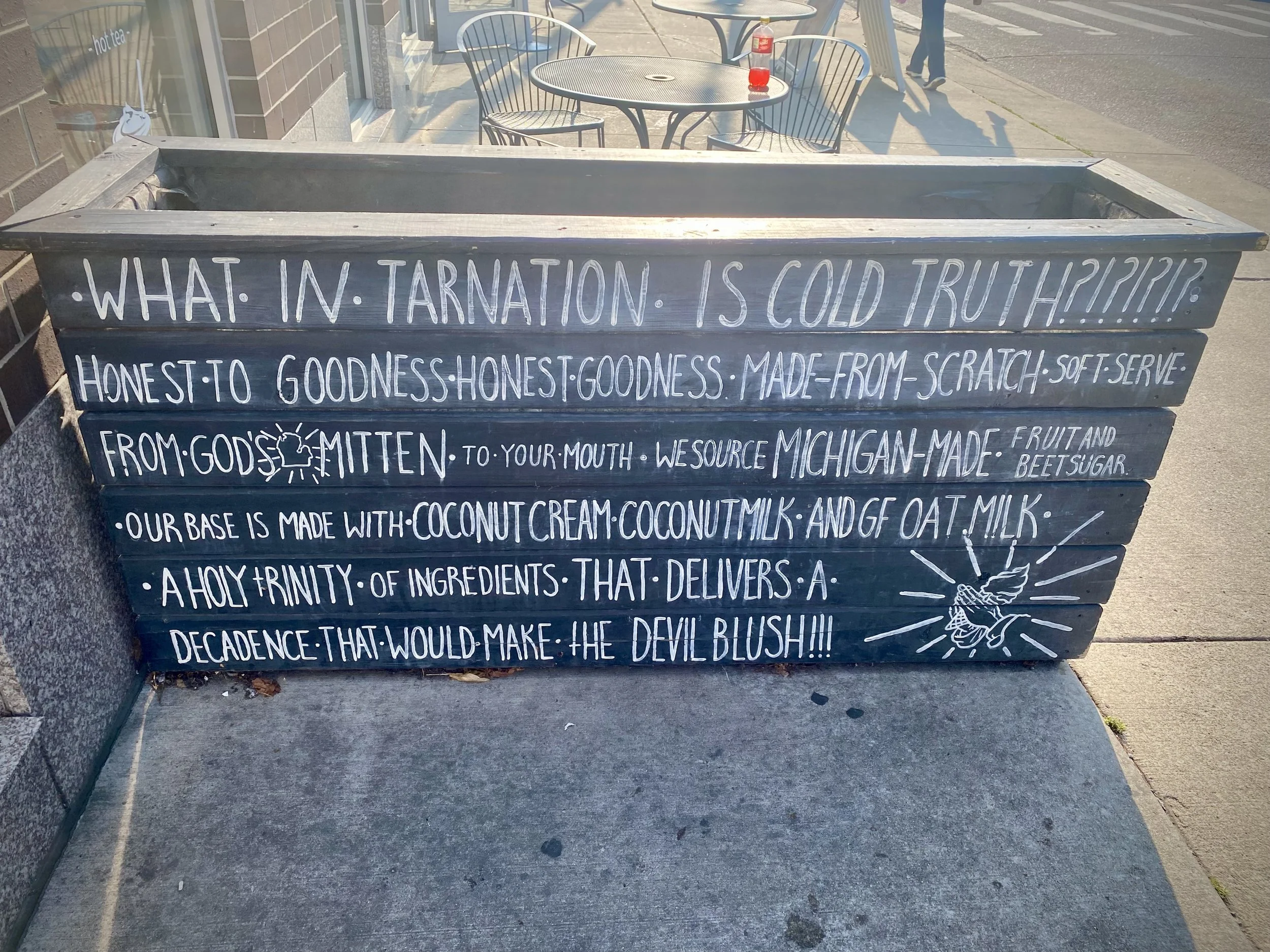 I specifically timed my afternoon arrival into Detroit so that I could try Cold Truth as soon as they opened at 4pm. It was a super hot moment of sun in that point in my September afternoon and I swear to seitan, soft serve ice cream has never tasted so nostalgically on point. I ordered chocolate soft serve (coconut and oat based) with a peanut butter dip finished off in a coating of Oreo crumbs. 12 out of 5 stars. I loved everything about this spot.